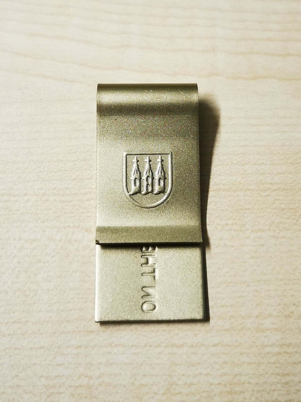 Dazu gehört die Geldklammer mit dem Schriftzug „On the road again“.