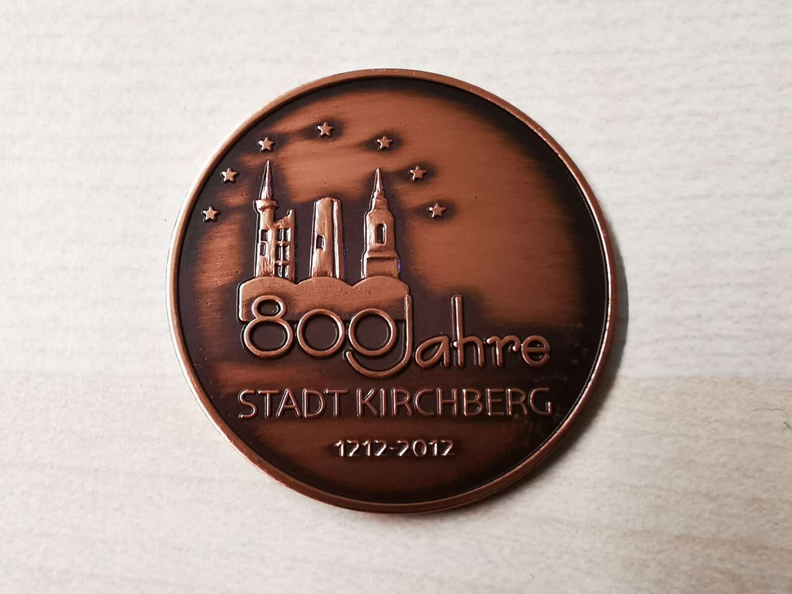 Geprägt mit dem Wappen der Stadt Kirchberg