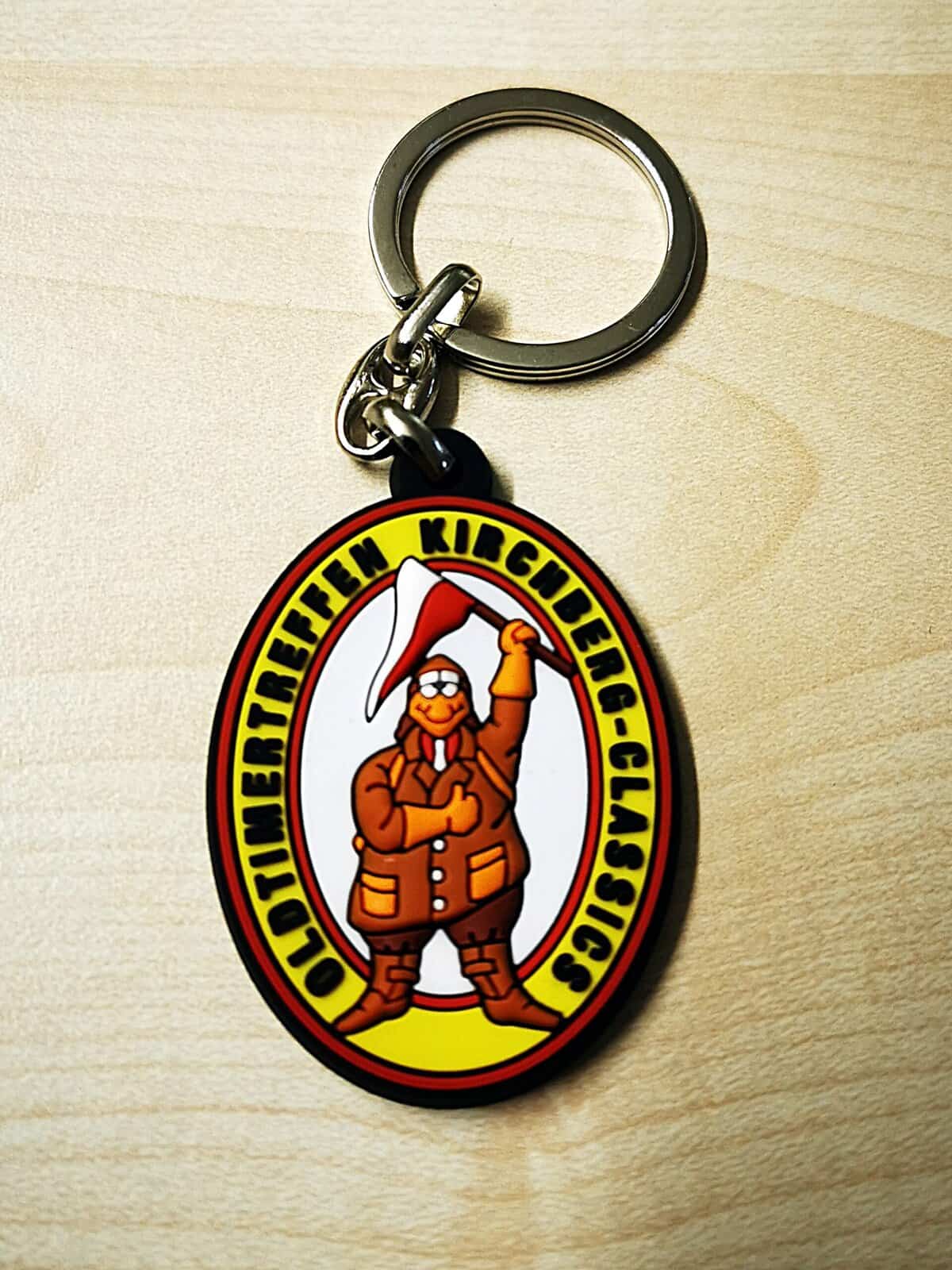 Aufgebracht ist das Maskottchen der Kirchberg Classics sowie die Aufschrift „Oldtimertreffen Kirchberg Classics“