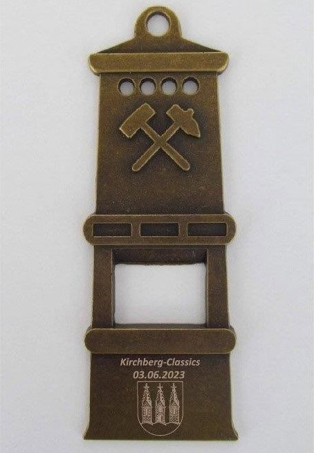 eingraviert ist das Logo der Stadt Kirchberg sowie der Schriftzug „Kirchberg Classics 03.06.2023“